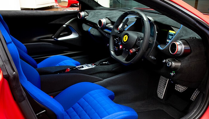 Realizzata dalla divisione Tailor Made di Ferrari che personalizza i modelli del Cavallino, questa 812 Competizione è ispirata nel look alla monoposto F1-75 della quale riprende il colore e il logo celebrativo dei 75 anni della Casa di Maranello