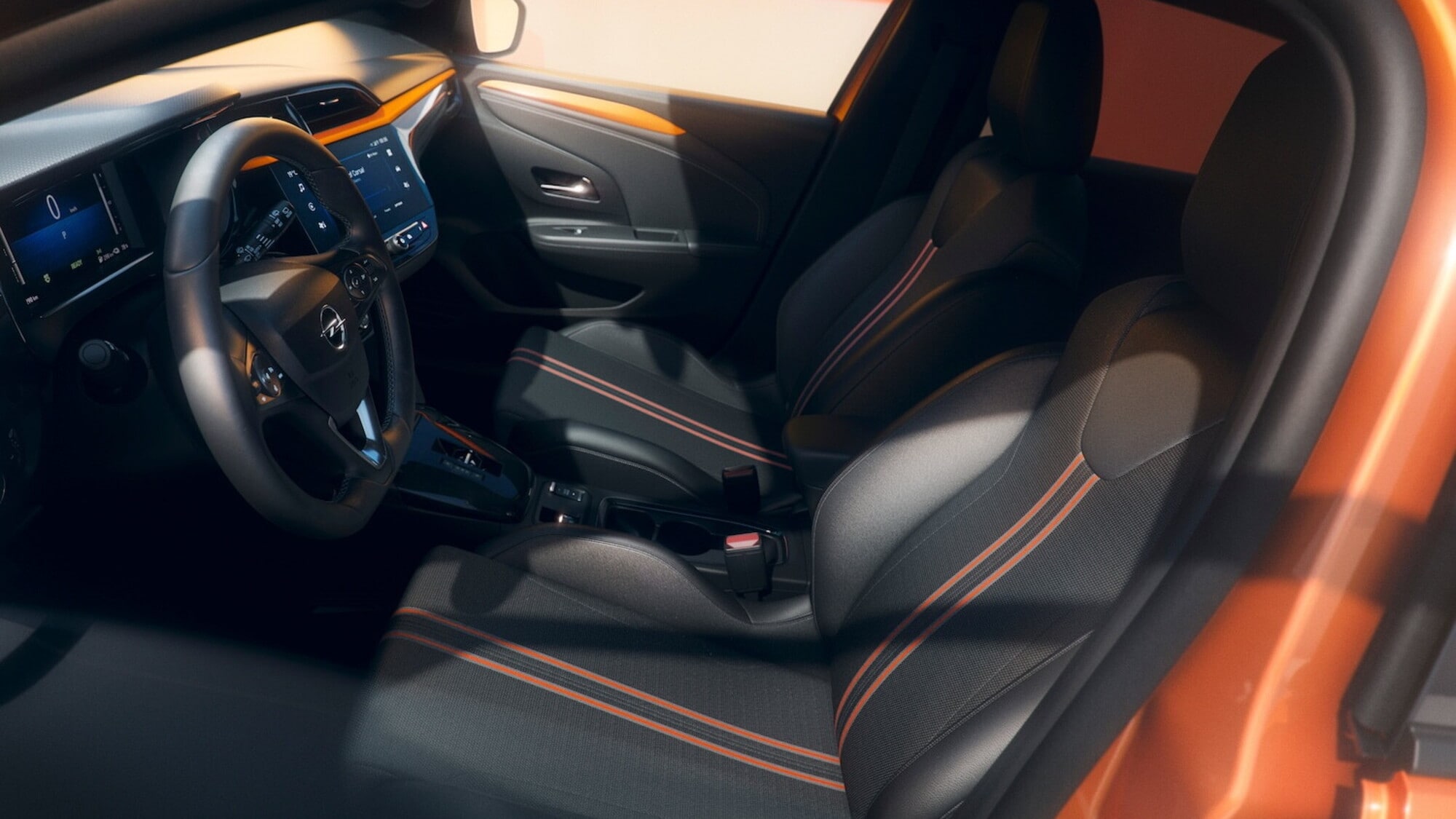 A bordo, poi, l’abitacolo richiama con inserti colorati in plancia e sui sedili la tinta della vettura, che sia l’Orange o il Green. Quanto alla dotazione, invece, spazio alla strumentazione digitale da 7 pollici, abbinata all’infotainment con display da 10”, proseguendo con il volante in similpelle e la corona sportiveggiante, tagliata in basso.