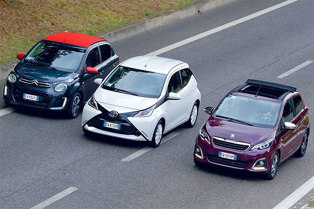 Aygo, C1, 108, prova confronto tra citycar